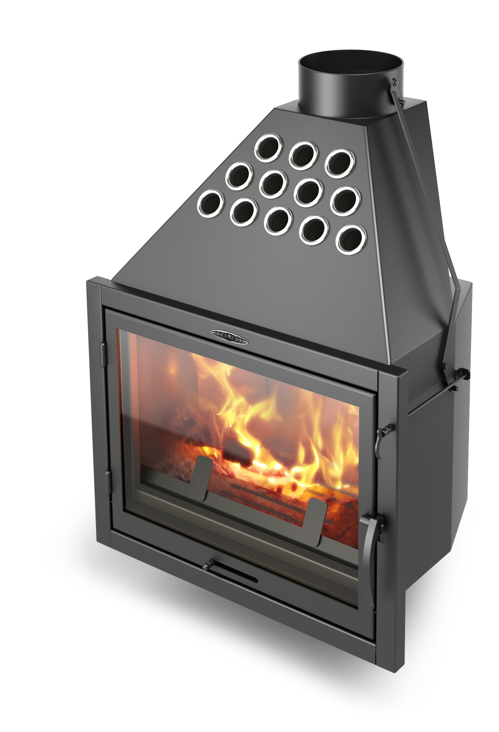 Большой топливник и герметичная дверца обеспечивают длительный процесс горения. А специальное отверстие в ручке дверцы облегчает ее открывание и закрывание. Набор конвективных труб способствует лучшему нагреву помещения.