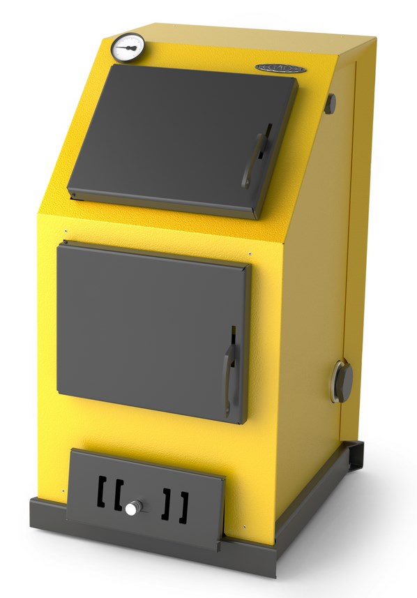 Котел водогрейный Оптимус Лайт, 20кВт, с возможностью установки автоматического регулятора тяги и трубчатого электронагревателя, желтый