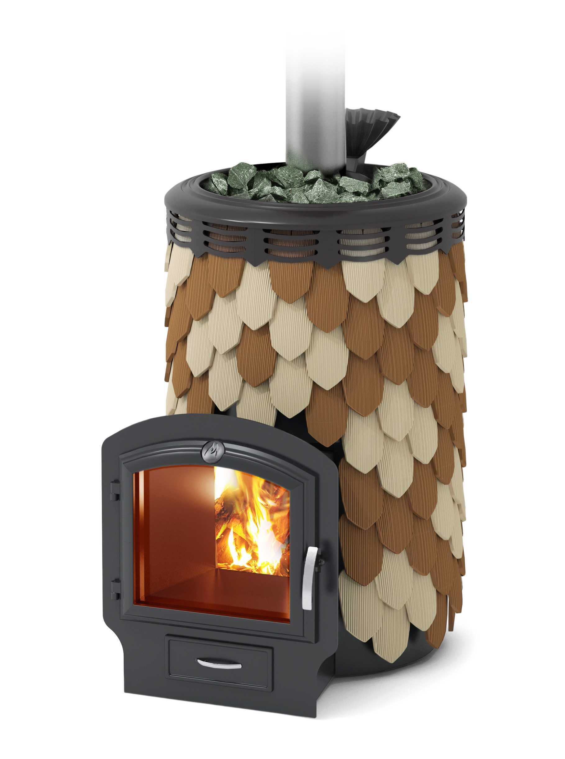 Дровяная банная печь «Панголина» – керамико-металлическая банная печь TMF. Это стальная банная печь, облицованная снаружи изразцами из натуральной терракотовой керамики.