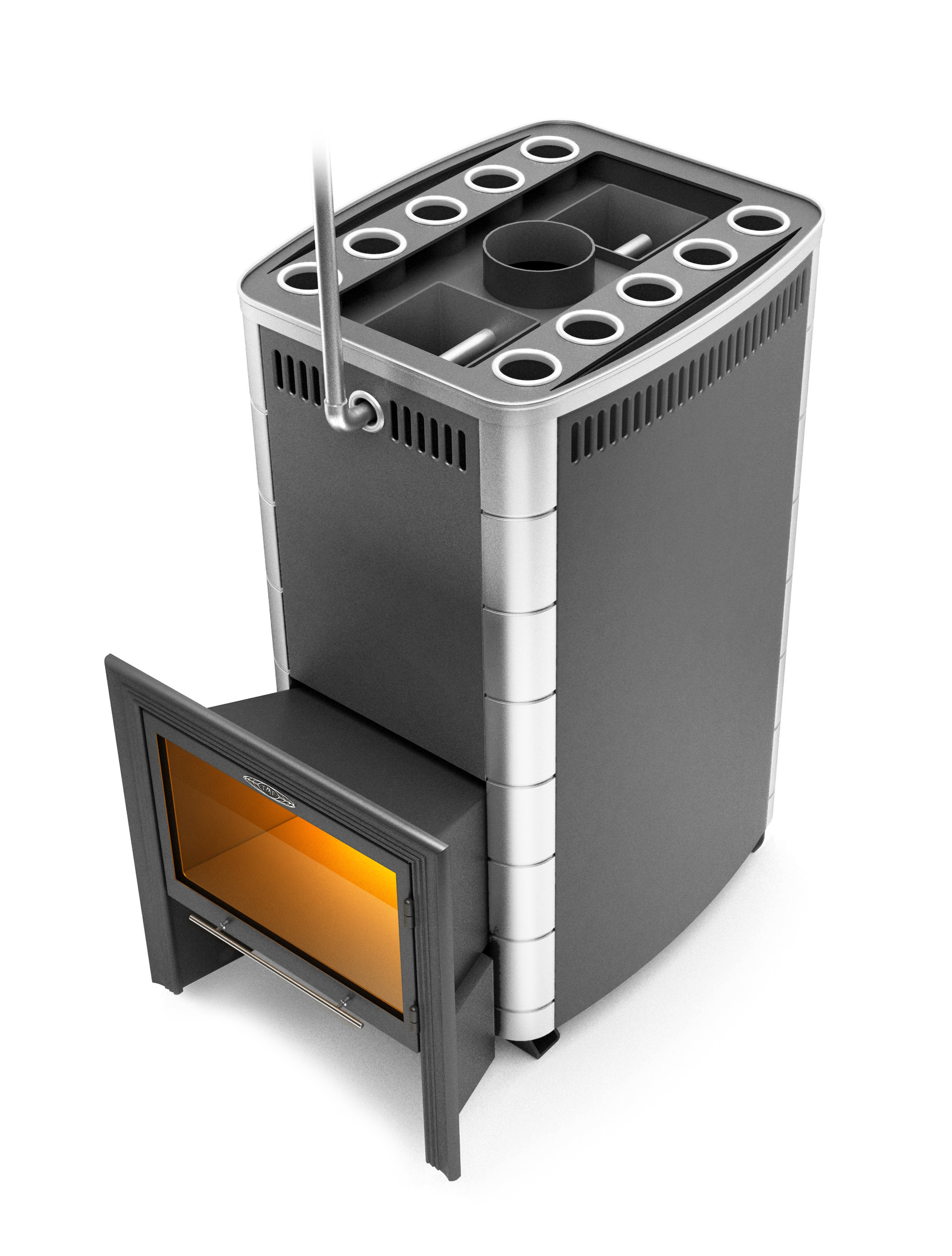 Дровяная банная печь бизнес-класса, самая мощная среди печей «TMF». Рассчитана на объем парилки до 50 м3.