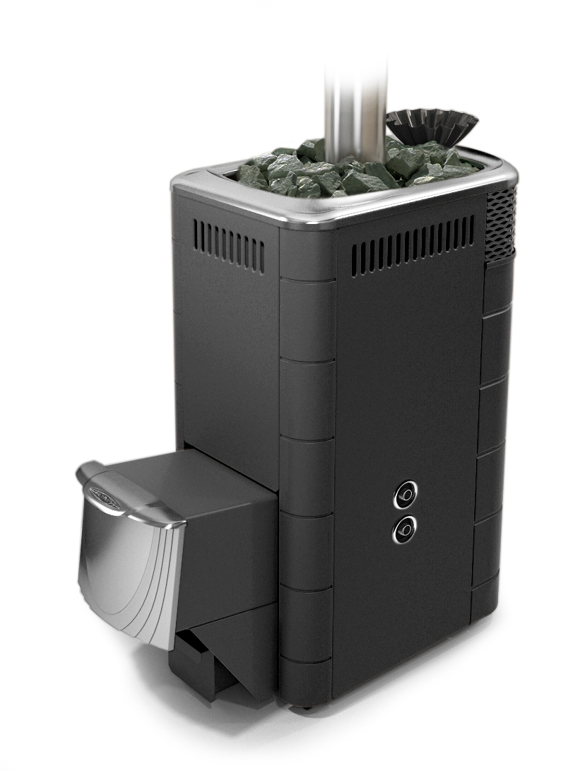 Увеличенная и усиленная двойным сварным швом закрытая первичная каменка обладает достаточной теплоемкостью для частых интенсивных подач воды.