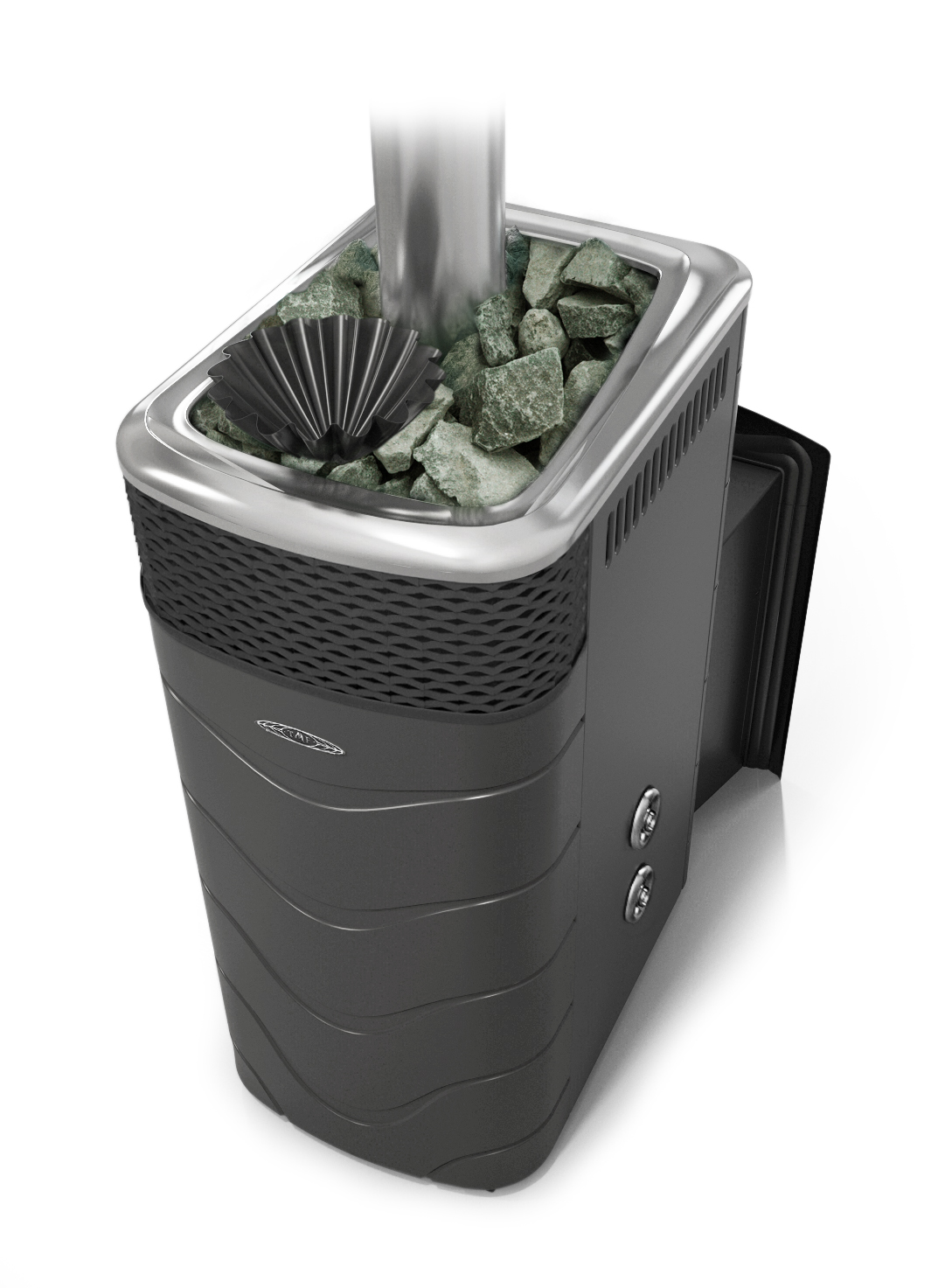 Увеличенная и усиленная двойным сварным швом закрытая первичная каменка обладает достаточной теплоемкостью для частых интенсивных подач воды.