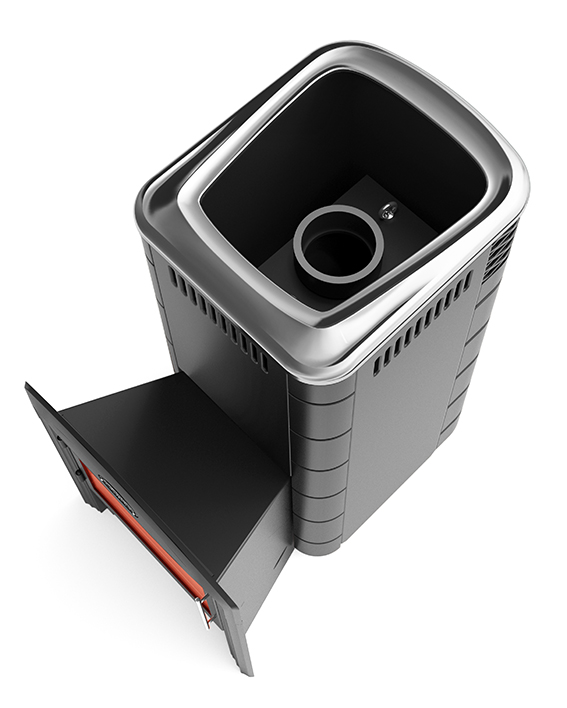 За счет увеличенного объема каменки масса закладываемых камней в новой модели почти в 2 раза больше по сравнению с «Каронадой» среднего класса. Большая закладка камней хорошо аккумулирует и долго держит тепло в парной.