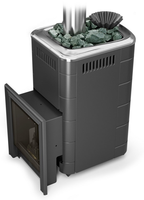 Печь-каменка банная Таймыр 2017 Inox с большим светопрозрачным экраном, с закрытой каменкой, антрацит