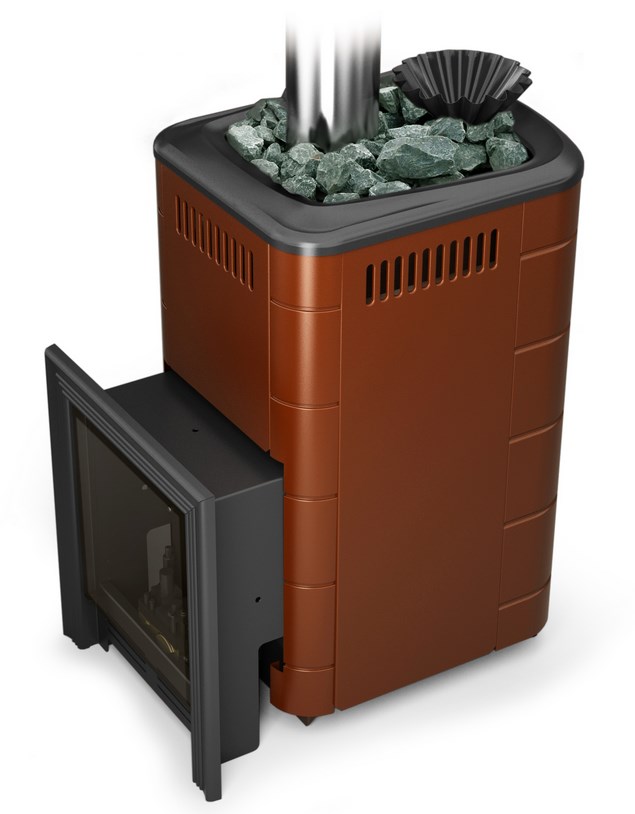 Печь-каменка банная Таймыр 2017 Inox с большим светопрозрачным экраном, с закрытой каменкой, терракота