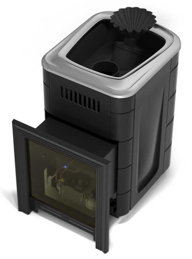 В газовой печи «Таймыр Мини 2017 Carbon» применена запатентованная система двойной подготовки пара, как во всей линейке дровяных печей «Гейзер», которые уже несколько лет являются лидером продаж банных печей TMF. Печь имеет две каменки – одну внутреннюю закрытую, со всех сторон прогреваемую излучением и конвекцией от газопламенного потока и вторую – открытую наружную. Вода в закрытую каменку подается через воронку с обратным клапаном, где испаряется, но пар из нее выходит не сразу в парную, а сперва с большой скоростью попадает в открытую каменку, где дополнительно перегревается и лишь после этого попадает в парную. На камнях открытой каменки удобно запаривать и освежать веник, а также испарять ароматизаторы.