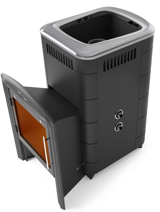 Печь-каменка банная Тунгуска Cast Витра с теплообменником, антрацит