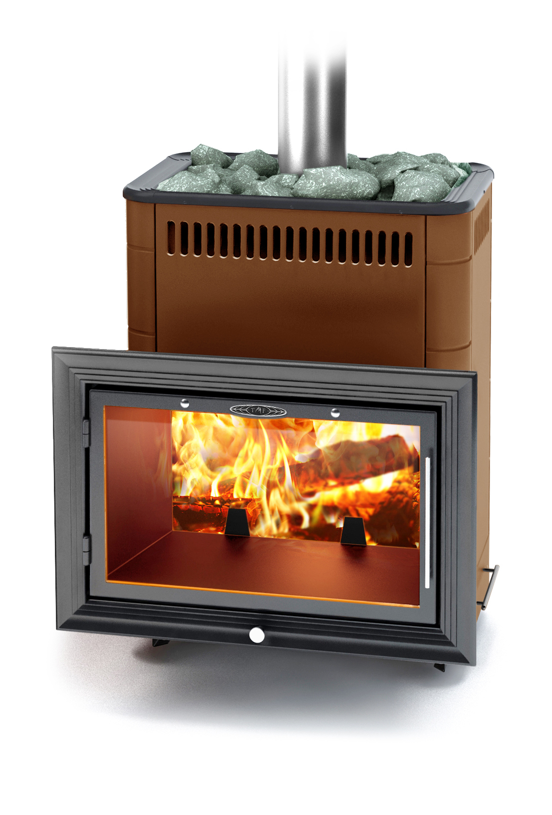 Печь банная каменка Витрувия II Inox с большим светопрозрачным экраном, терракота