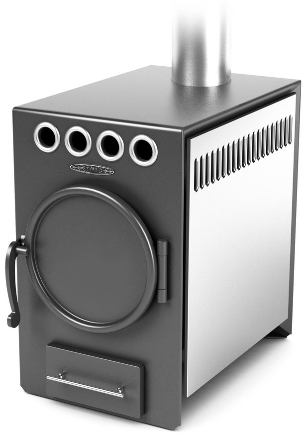 Печь отопительно-варочная Нормаль-2 Турбо антрацит с нержавеющим конвектором, труба сверху