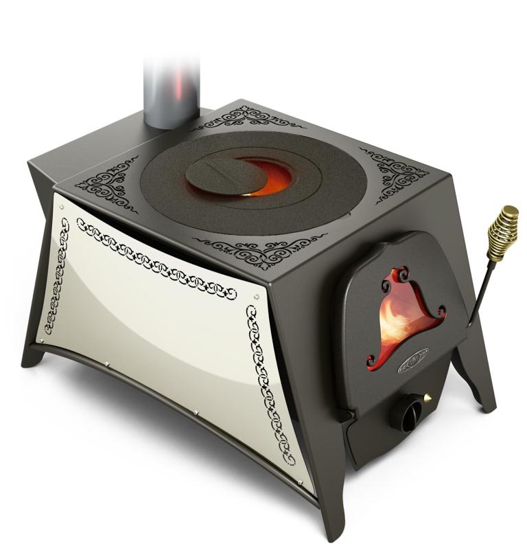 Съемная чугунная варочная поверхность позволяет готовить пищу на открытом огне, в том числе и в казане.