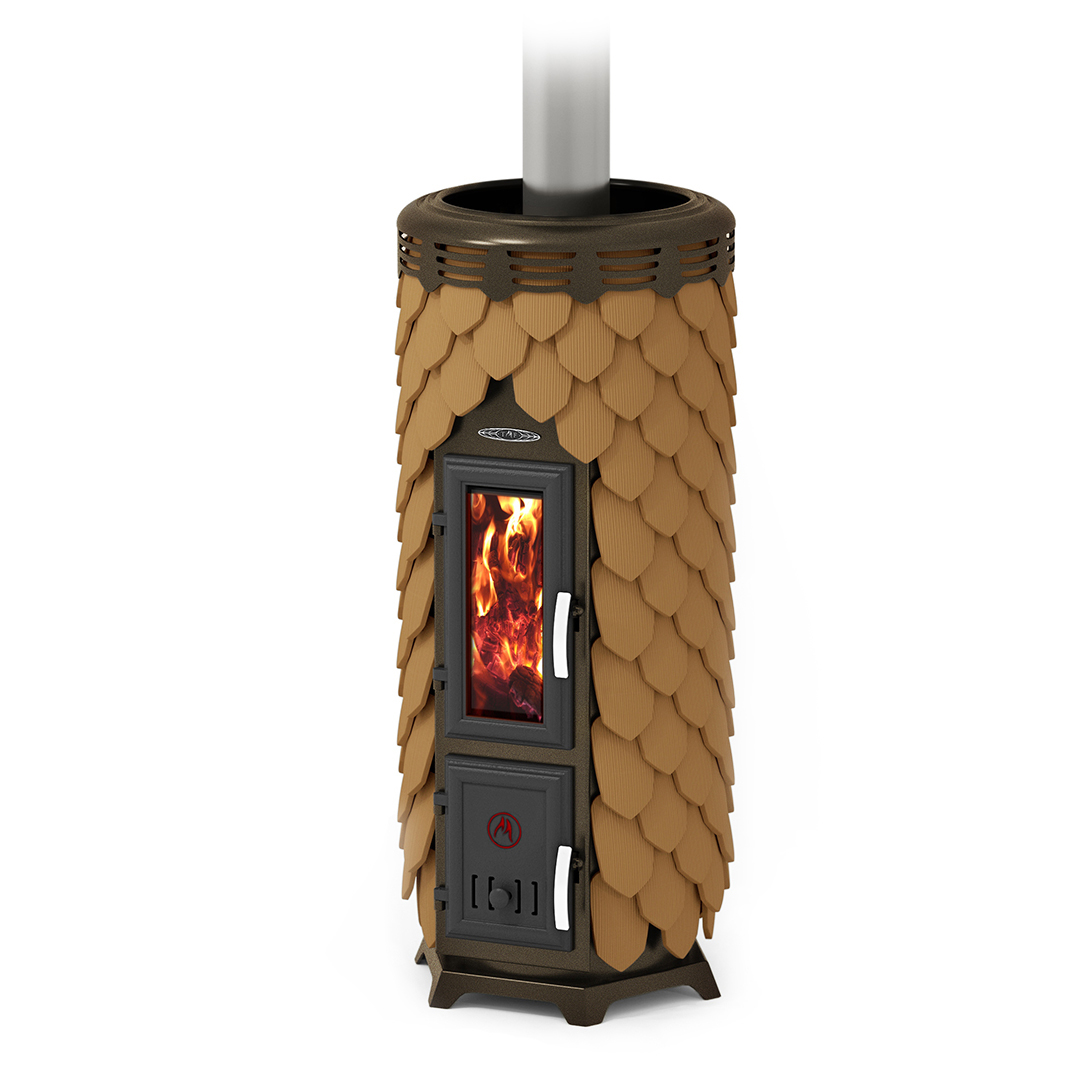Дровяная отопительная печь «Панголина» – первая керамико-металлическая отопительная печь TMF. Это стальная печь, облицованная снаружи изразцами из терракотовой керамики.