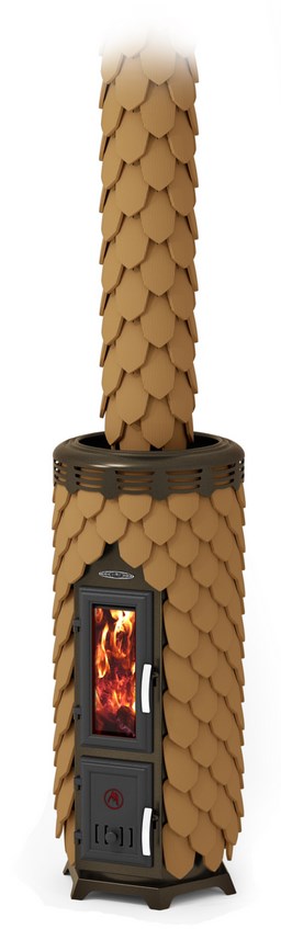 В модели «Сента Панголина» декорированный изразцами дымоход входит в комплект поставки. Терракотовые изразцы поставляются в деревянных ящиках вместе с печью независимо от модели.