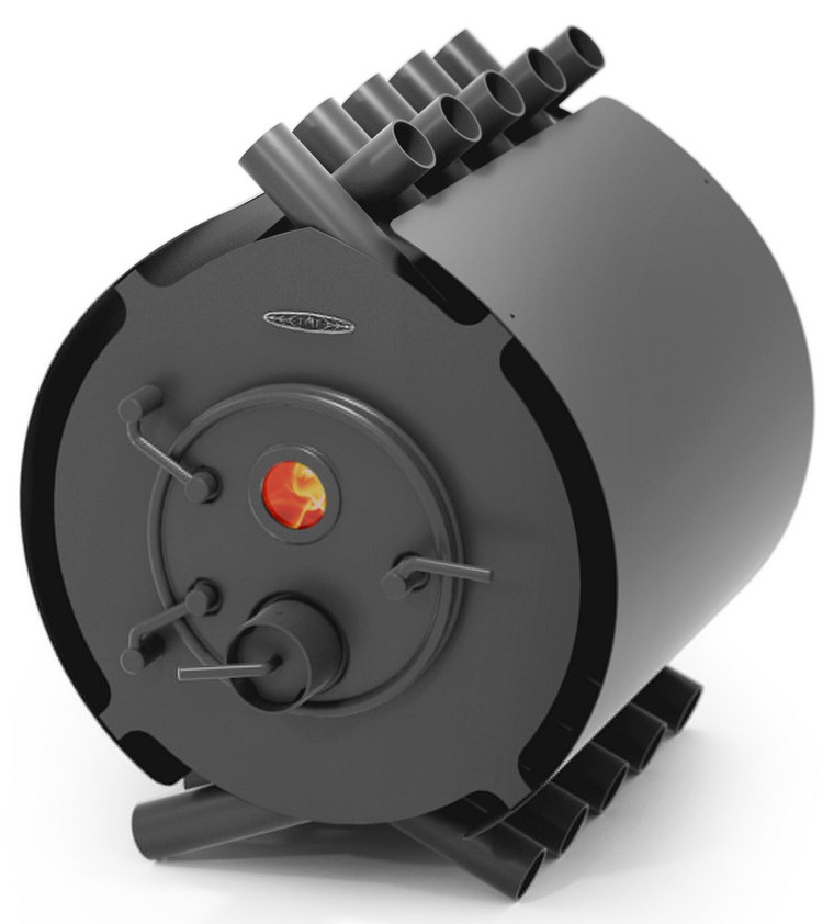 Печь состоит из набора одинаковых конвекционных труб, окружающих топочную камеру. Холодный воздух, проходя по горячим трубам, нагретые излучением от горящего топлива, создает естественную конвекцию, благодаря чему происходит быстрый нагрев воздуха и его плавное распределение по всему объему помещения.