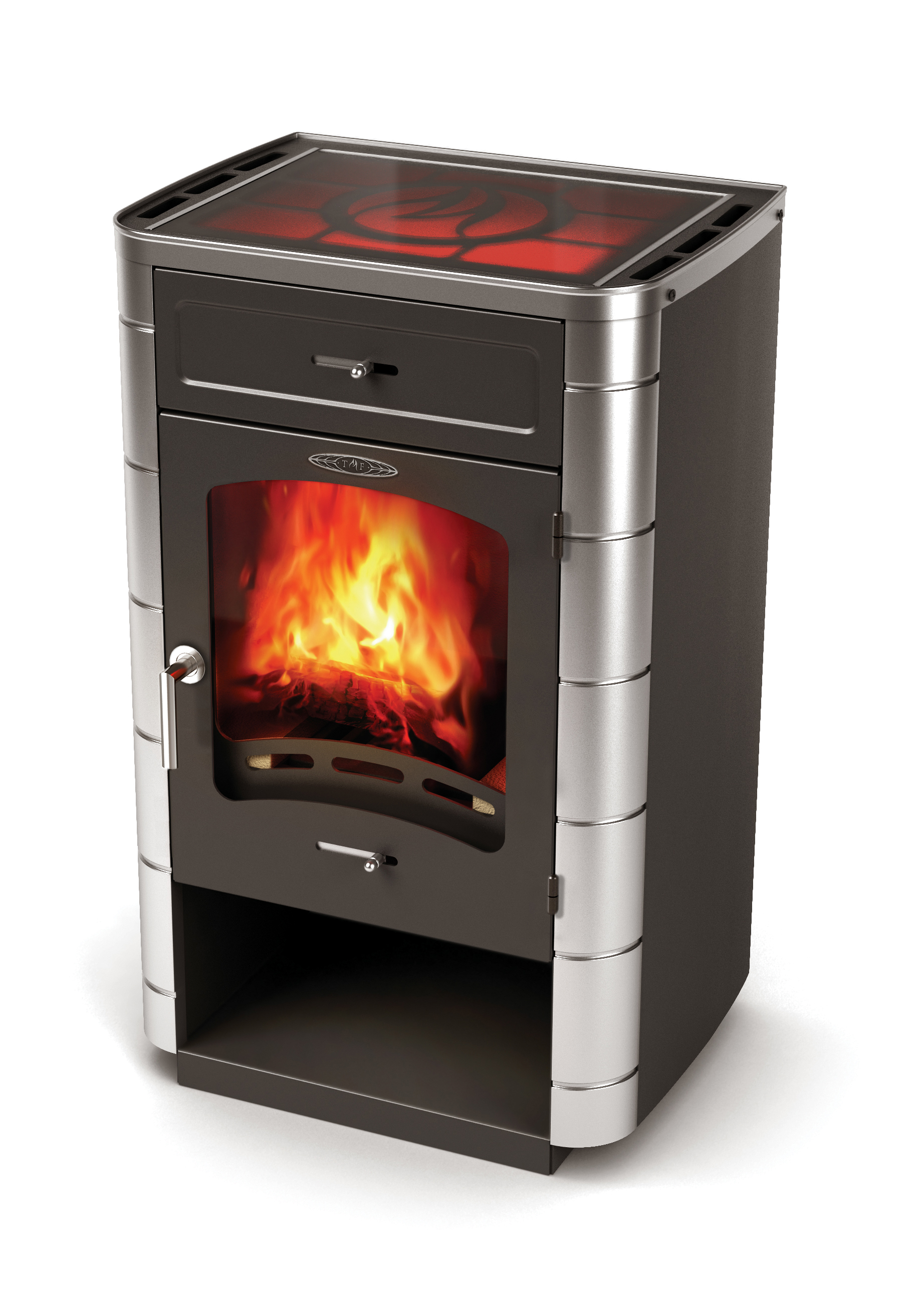 • Печь сочетает в себе эффективный отопительный прибор, удобную варочную печь и красивый камин