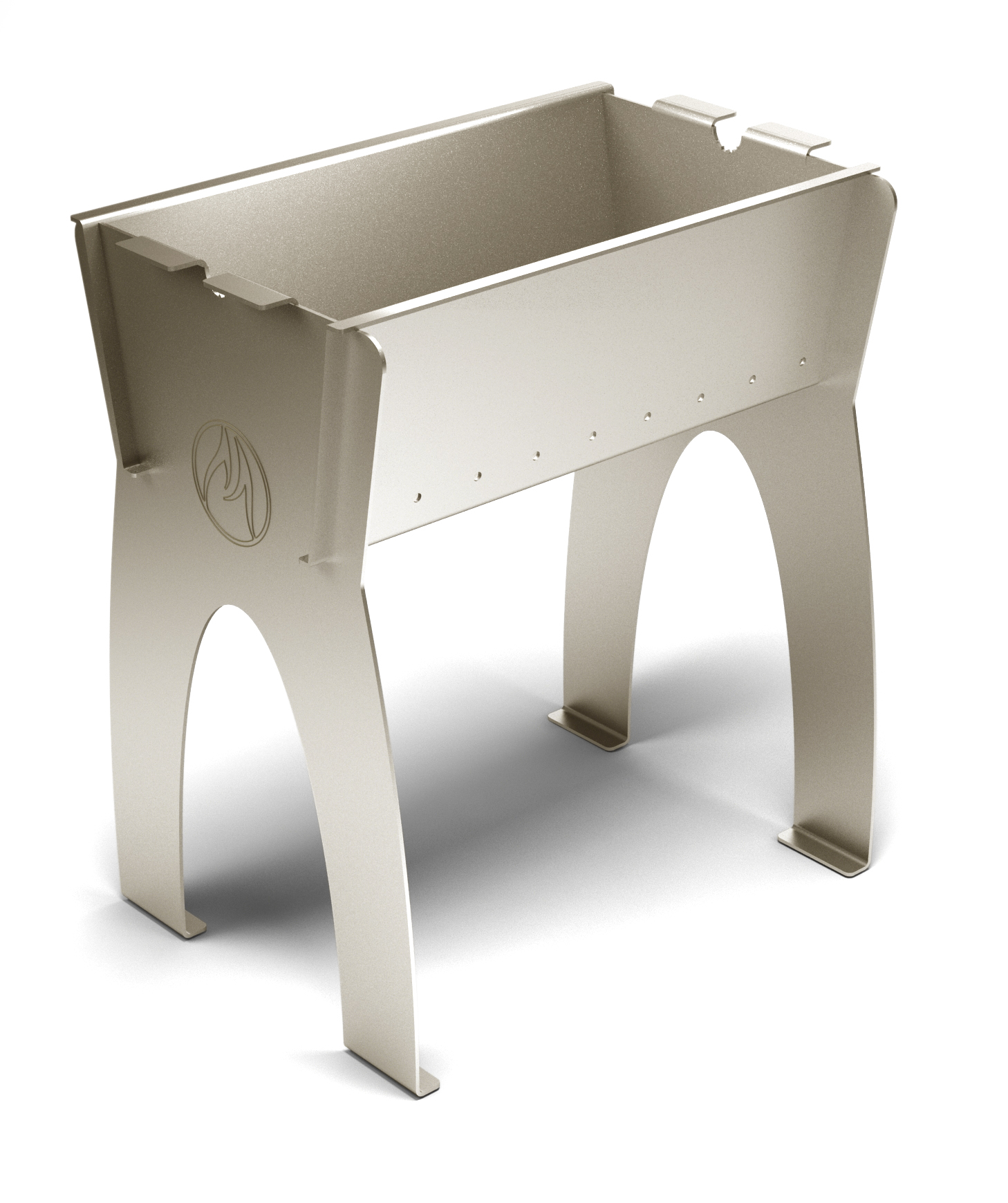 • Прочная сталь толщиной 3 мм и ребра жесткости сохраняют геометрию мангала при большой нагрузке